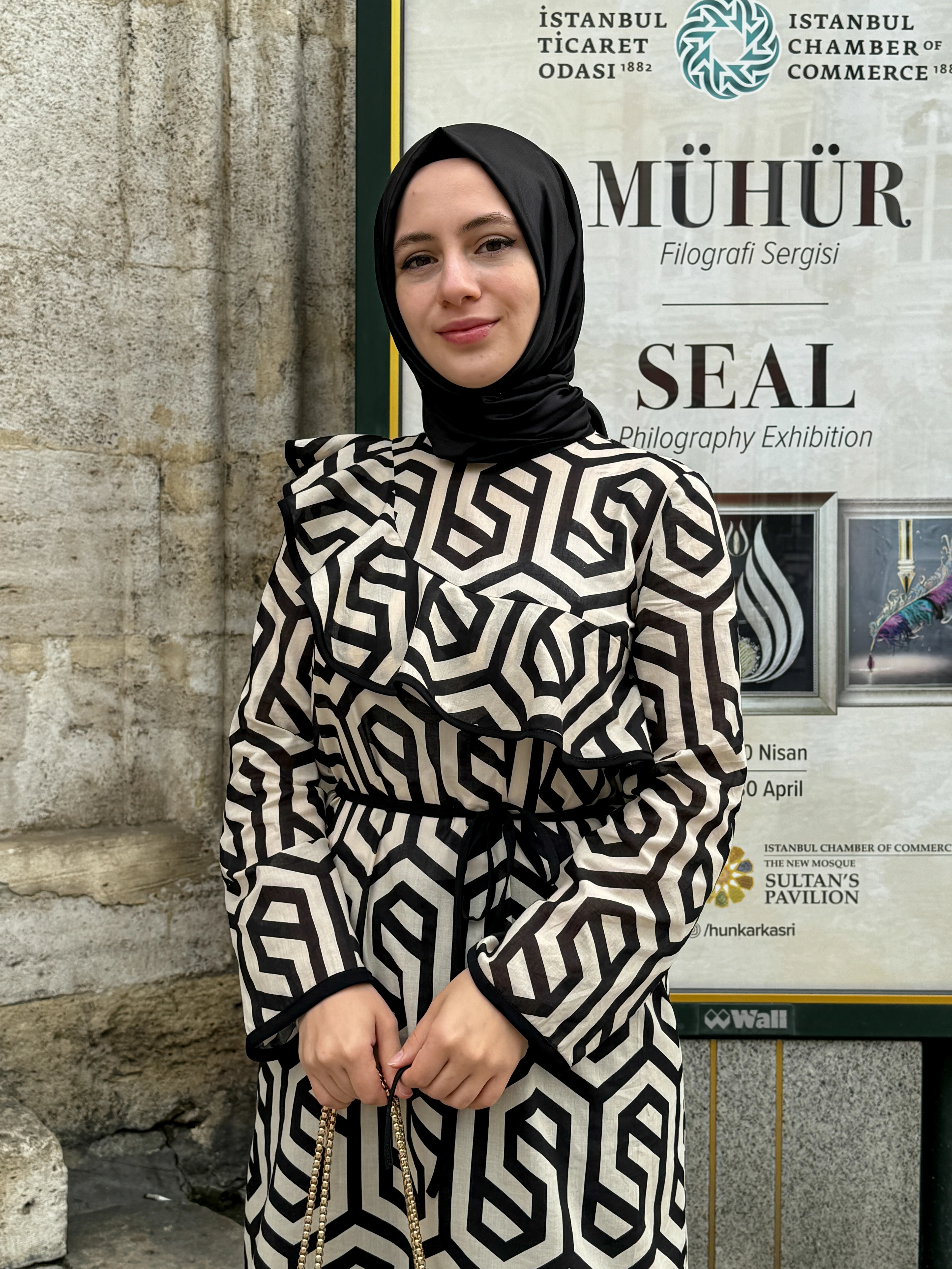 Kumaşı ince yazlık geometrik desen baskılı pamuklu kumaştır.
